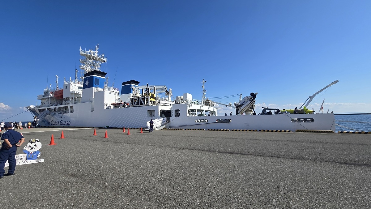 1枚目と2枚目は海自の新鋭艦「くまの」です! ステルス性を意識した姿は「未来」そのもの! 3枚目は海保の「平洋」どちらも見学してきましたが、それぞれ凄かった!