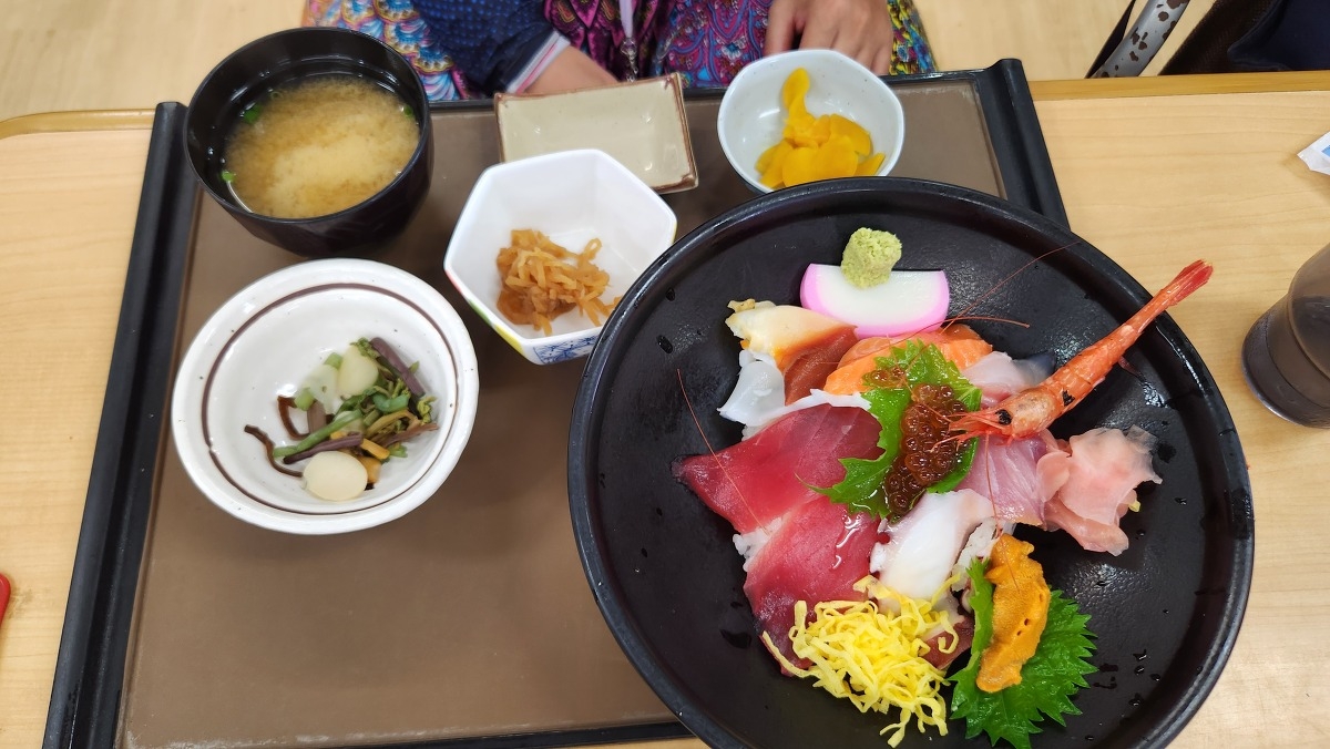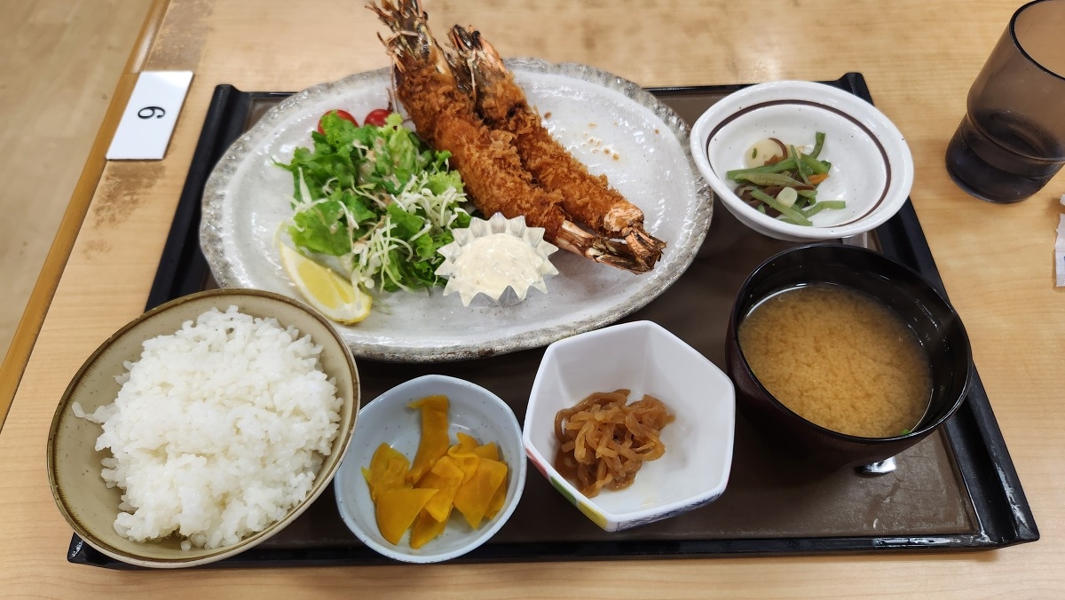 「市場食堂どんぶり屋」さんは有名なお店だったようで、名物の大エビフライ定食と海鮮丼を頂いたのですがデカ盛りで旨い! ご飯のおかわりも出来て腹パンで大満足でした