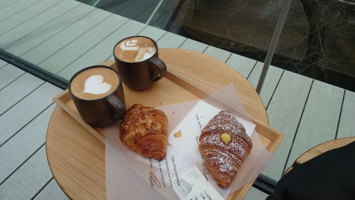 ただのスターバックスじゃない!その名もスターバックスリザーブロースタリートウキョウ!(長い) 中目黒にある焙煎機を所有した日本で唯一の店舗です。まずは店の前に来て思いました。デカい!四階建てで全部中はスターバックス。お客さんが10時の時点で数百人!店の外でも並んでる(汗)20分ほど並んでカフェラテを注文。香りが違う。すごいふわふわして豆の味が濃厚。今まで最高のカフェラテかも。4階にはテラスがあり中目黒の景色を見ながら堪能。最高のひとときでした。