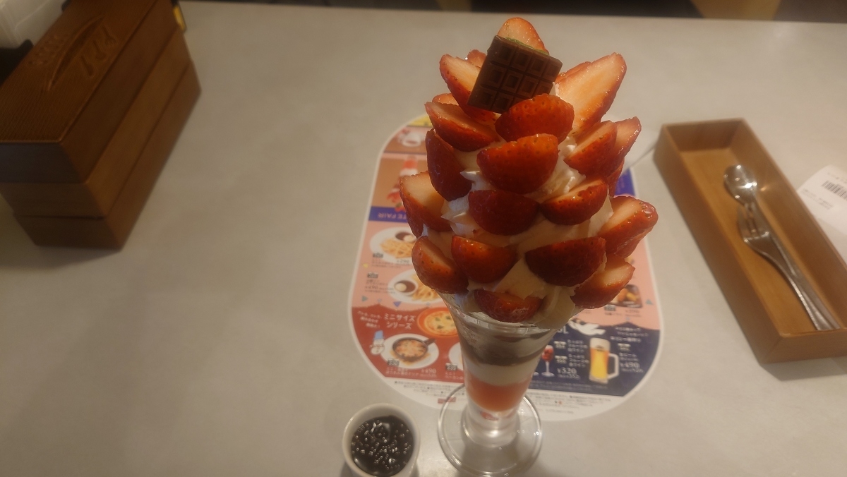 目的はひときわ大きいイチゴパフェを食べに。