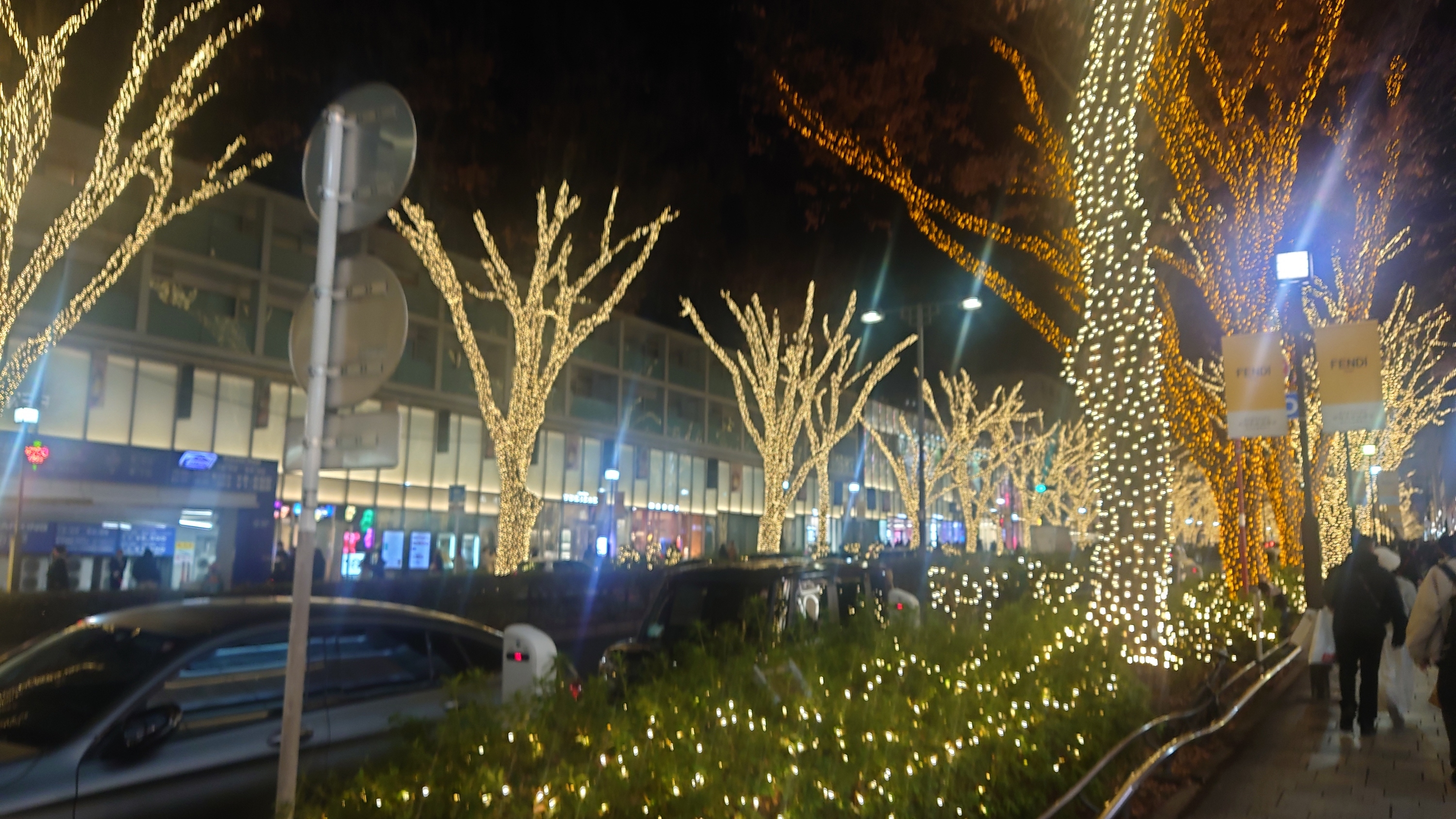 イルミネーションが!こちらは対照的に明るく光って眩しいくらいです。二種類のイルミネーションが堪能出来て、このルートはかなりの