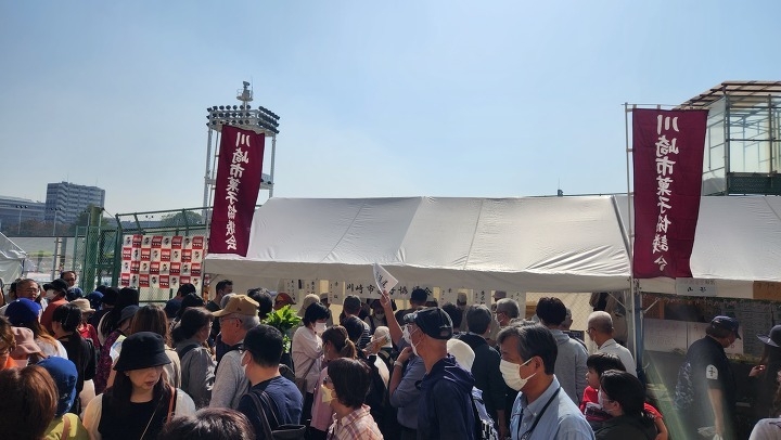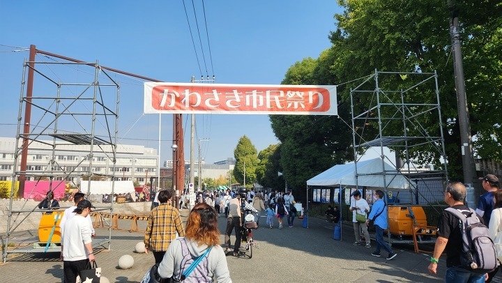 こんばんは、千恵蔵でございます。 11月に入ったにもかかわらず、汗ばむ陽気な今日でしたが「かわさき市民まつり」に行ってきました! 会場は市役所通りを少し行った川崎競輪場と富士見公園一帯が会場になっています。 毎年恒例なのですが地方物産コーナーが充実していて、宮崎の鶏の炭火焼きや大船渡のカキ小屋や全国各地のお酒やビールなど一日では味わい尽くせないようなボリューム! 他にも川崎の地元企業、地元チームのブースなど家族で行っても一日中楽しめるようなイベントです!! 5日まで開催していますので、行ってみてはいかがでしょうか??